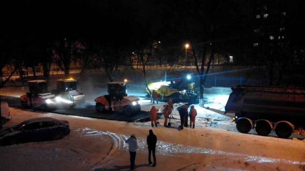 В Полтаве в понедельник, 28 декабря, после того, как выпал снег, начали асфальтировать две центральные улицы города - Чорновила и Сковороды.