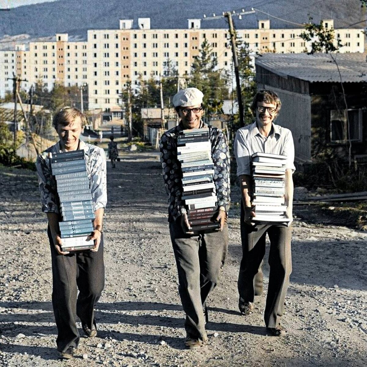 Так выглядит обычный советский читающий человек. Читали везде - на лавочке, в автобусе, метро, дома, ну и конечно в читальном зале. Посмотрите, как хорошо люди одеты. Исключительно красиво одеты.